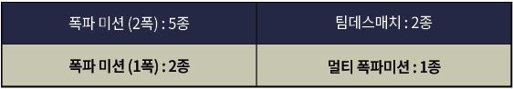 폭파 미션(2폭) / 팀데스매치 / 폭파미션 (1폭) / 멀티 폭파미션