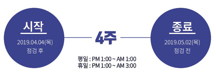 2019년 4월 4일 (목) 점검 후 부터 2019년 5월 2일 (목) 점검 전까지