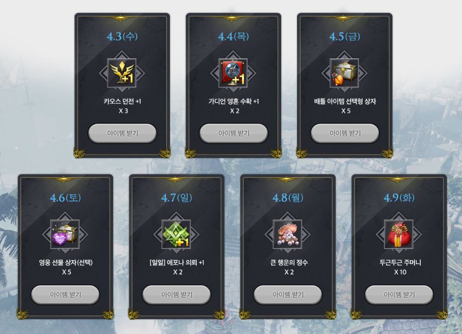 이벤트 페이지에서 [아이템 받기]를 누르면