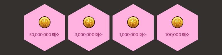 50,000,000 메소 / 3,000,000 메소 / 1,000,000 메소 / 700,000메소 와