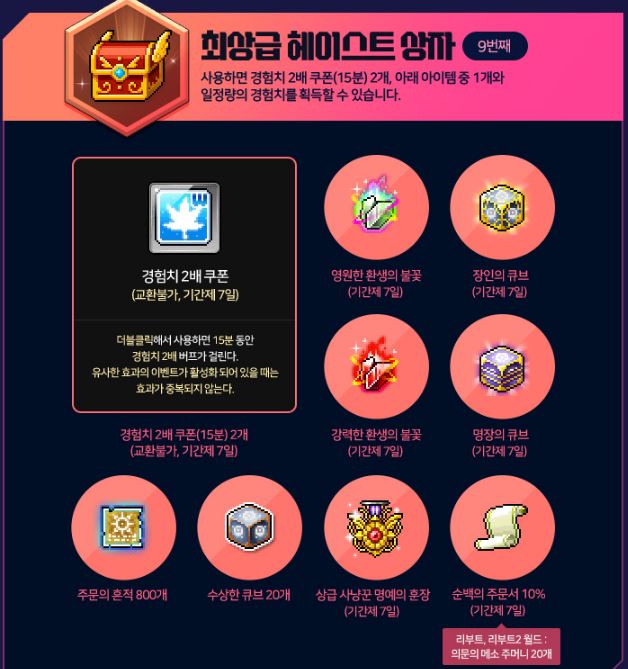 9개의 헤이스트 상자를 모두 열어 보상을 받았을 경우