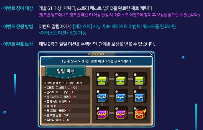 오늘은 메이플스토리에 새롭게 시작된 사냥가속 헤이스트 이벤트에 대해서 안내해드리려고 합니다.