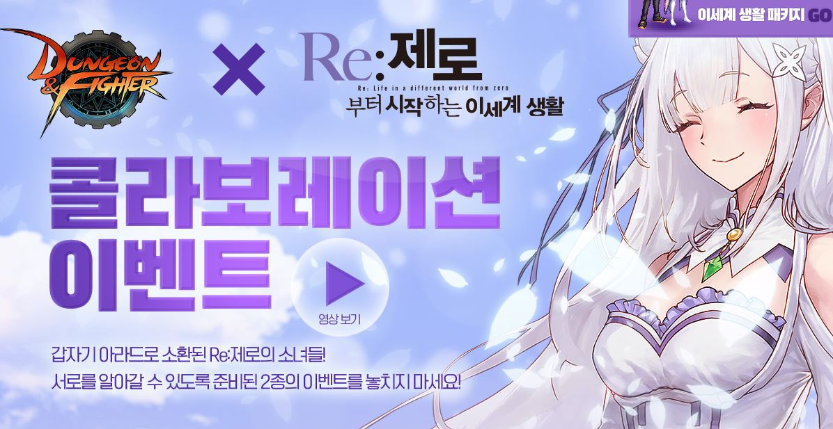던전앤파이터가 이번에는 인기 애니메이션 Re:제로와 콜라보 이벤트를 진행한다고 합니다.