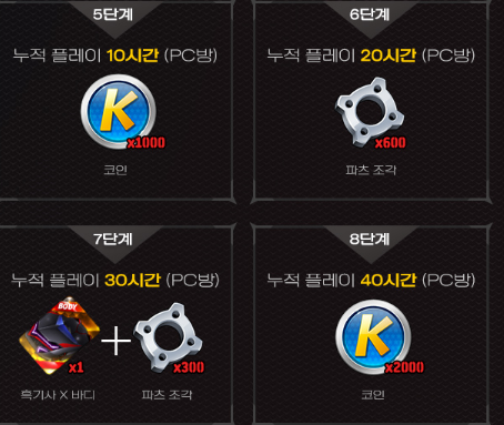 pc방에서 누적플레이 60시간을 하면 얻을 수 있는 흑기사X...
