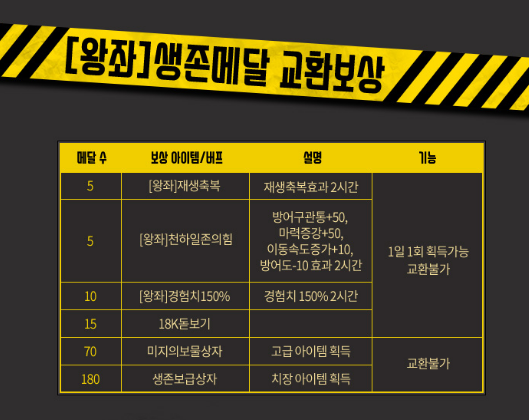 [왕좌]생존메달로 다양한 보상을 교환 할 수 있습니다.