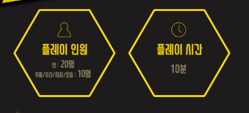 플레이 최소 인원은 20명이며 플레이 시간은 10분으로