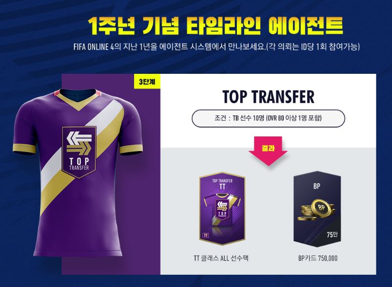 3단계(TOP TRANSFER) : TB선수 : 10명 → TT 클래스 ALL 선수팩 +BP