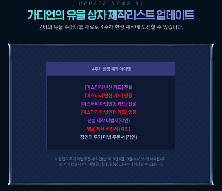 서버 한정 제작 아이템은 5월 15일(수) 13시 부터 제작할 수 있다고 합니다.