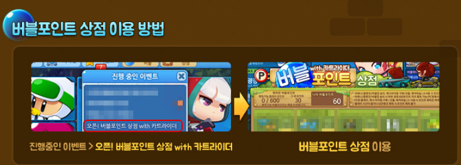 진행중인 이벤트 > 오픈! 버블포인트 상점 with 카트라이더를