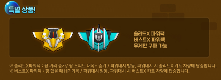 이벤트 기간동안 신규 카트 콜라보 파워팩3종(스펙트X, 버스트X, 솔리드X)