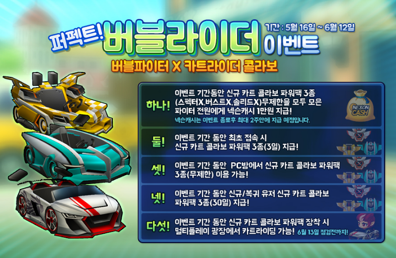 이번 콜라보 이벤트로 버블파이터에서 카트라이딩을 즐겨보시고