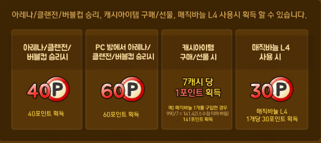 캐시 아이템 구매/선물 시 7캐시 당 1P