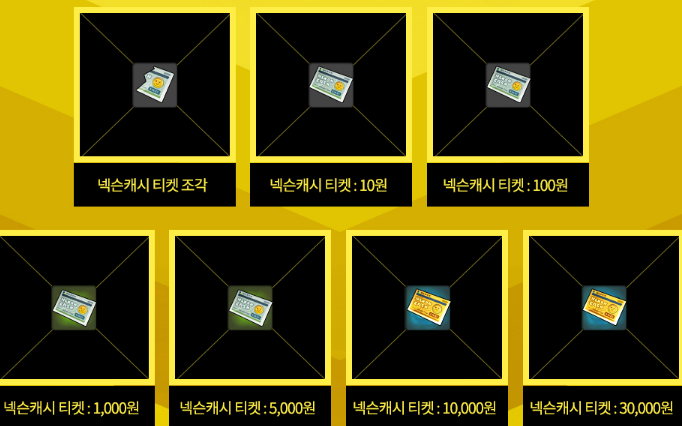 넥슨캐시 티켓 랜덤상자에서 나오는 넥슨캐시 티켓 조각을