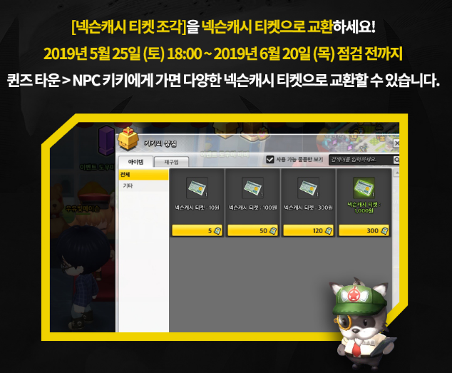 넥슨캐시는 2019년 6월 25일(화)오픈되는 공지를 통해