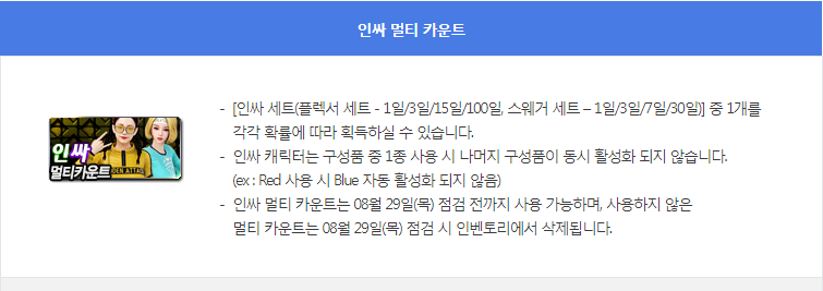 인싸 멀티 카운트에서 플렉서 세트 100일을 획득하실 시에는