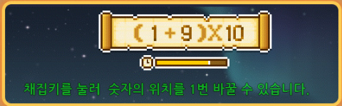 수식을 완성시키면 제한시간 5초 내에 1회에 한하여 채집키를 눌러서 숫자들의 위치를