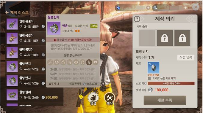 이벤트 던전 월령을 클리어 하게 되면 이벤트 상인 하현에게서 금빛 월령 상자를 제작할 수 있는데요.