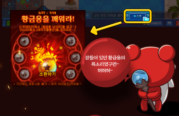 모든 여의주 물풍선을 모았다면[퀘스트] → [황금용을 깨워라]로 이동하신 후에