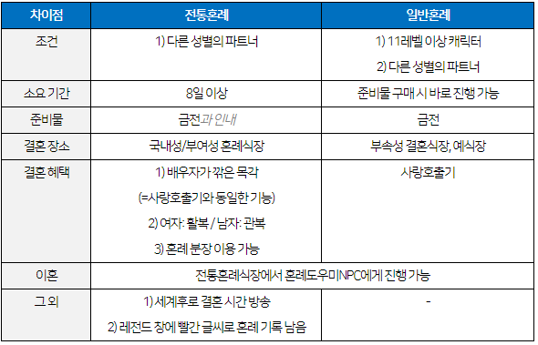 바람의 나라에서는 전통 혼례, 일반 혼례 이렇게 2가지의 혼례가 존재하여