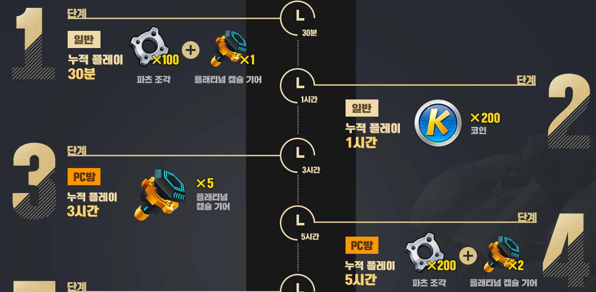 1단계 - 30분 - 파츠조각, 플래티넘 캡슐 기어