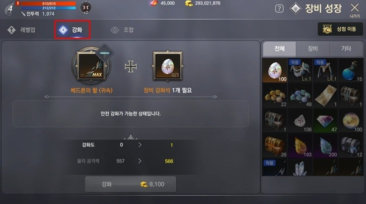 다음은 장비 강화에 대해서 살펴보도록 할게요.