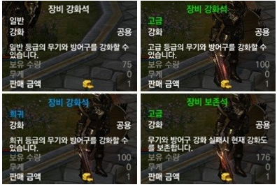 장비 강화에서도 등급별 강화석이 따로 존재하기에 아이템을 강화할 때는