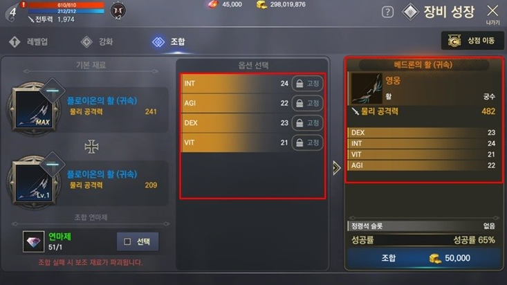 또 조합 대상이 되는 장비와 재료 장비의 옵션 중에서 필요한 옵선을 선택할 수 있기 때문에