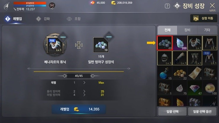 장비 레벨업 방법에 대해서 알아보도록 할게요.