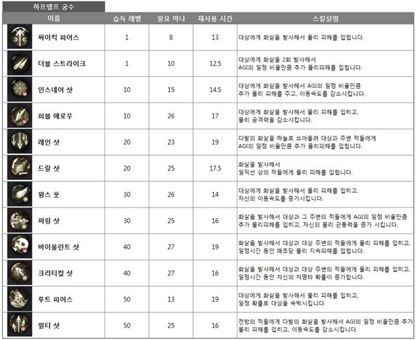 휴먼기사와 하이엘프 궁스 엑티브 스킬되겠습니다.