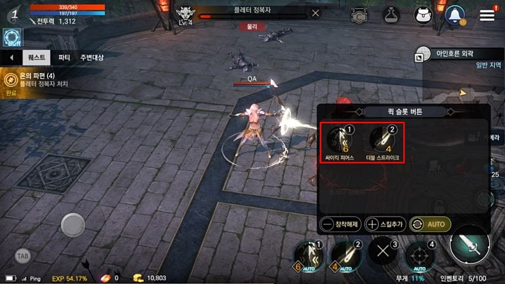 왼쪽 위 사진처럼 게임 메인화면 우측 하단에 위치한 각각의 스킬 슬롯 중에서