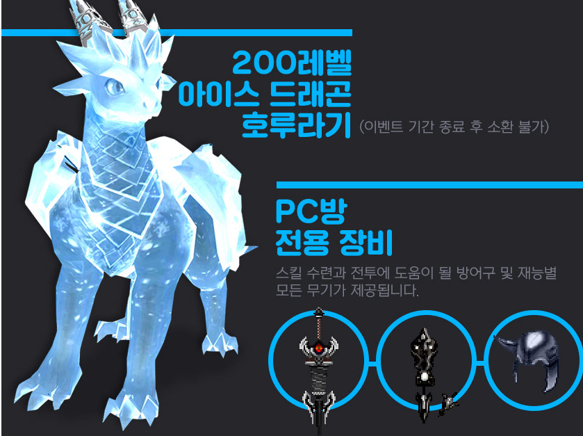 아이스드래곤, PC방 전용장비에 이어 의상도 대여해보실 수 있겠습니다.