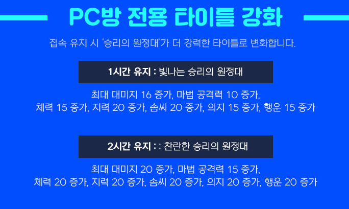 우선 첫 번째 이벤트는 PC방 전용 타이틀인 승리의 원정대 타이틀을 강화시킬 수 있습니다.