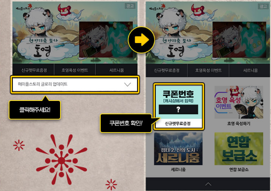 우선 PC버전에서는 쿠폰번호가 공개되어 있기 때문에