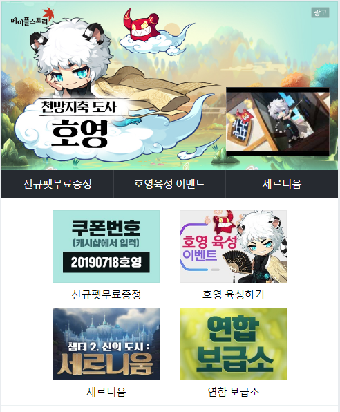 모바일 버전에서는 가려져 있기 때문에 메이플스토리 글로리 업데이트를 클릭해주시면