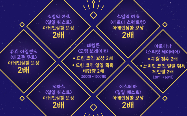 다음은 토요일, 일요일 PC방에서 아케인리버 일일 컨텐츠 완료 시 보상을