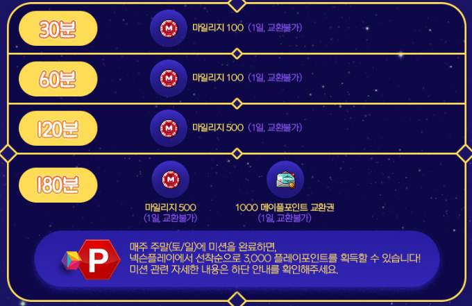 매주 주말에 미션을 완료하면 넥슨플레이에서 선착순으로