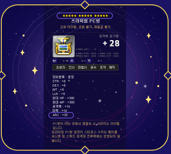 이번 PC방 이벤트에는 스타포스/아케인포스 옵션이 추가되어