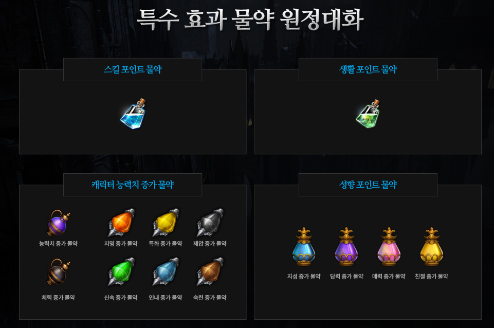 수집형 포인트 및 특수 효과 물약 원정대화