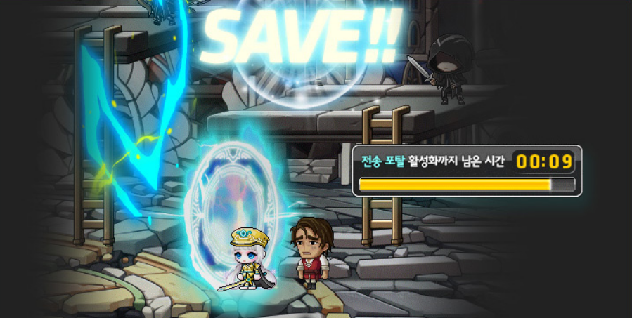 이렇게 주민들을 보호하다보면 전송 포탈 활성화까지 남은 시간이 0초가 되면 전송포탈이 나타나게되고