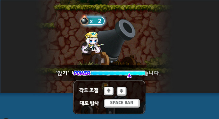 대포알을 가지고 맵 왼족에 위치한 대포에서 앉기 키를 누르면
