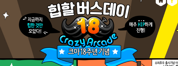 안녕하세요. 오늘은 크레이지 아케이드 소식을 가지고 았습니다. 크레이지아케이드가 2001년 10월 16일에 정식적으로 출시가 되었는데요.. 잘 생각해보면 이제 곧 크레이지아케이드가 18주년을 맞이하게 됩니다. 이를 기념하기 위해서 힙할버스데이라고 18주년 이벤트를 통해서 다양한 혜택을 받아보실 수 있다고 하는데요. 그럼 자세한 이벤트 내용에 대해서 알아보도록 하시죠.