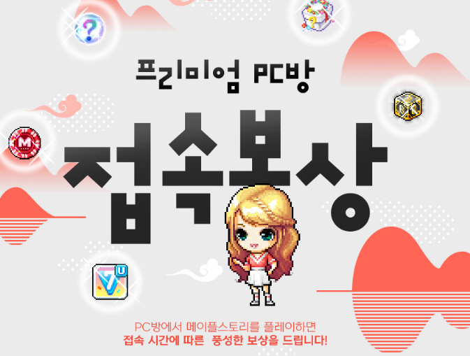 안녕하세요. 오늘은 메이플스토리 소식을 가지고 왔습니다. 현재 메이플스토리는 6000일 이벤트가 한창 진행중인데요. 이에 따라서 9월 도깨비 야시장에 진행되었던 PC방 접속 보상 이벤트는 종료되었고 새로운 PC방 접속 보상 이벤트로 변경되었는데요. 이에 따라서 접속 보상들이 많이 바뀌었답니다. 이번에 새롭게 바뀐 보상은 무엇이고 어떻게 해야 보상을 받아보실 수 있을지 알아보도록 하겠습니다.