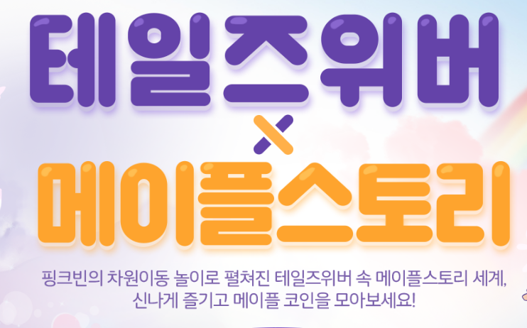 참고로 여기서 테일즈위버에서 메이플스토리 콜라보 이벤트가 진행되기 때문에 이번 이벤트는 메이플스토리가 아닌 테일즈위버 아이템을 획득해보실 수 있는 이벤트이니 미리 참고하시고 이벤트에 참여해보시면 되겠습니다.