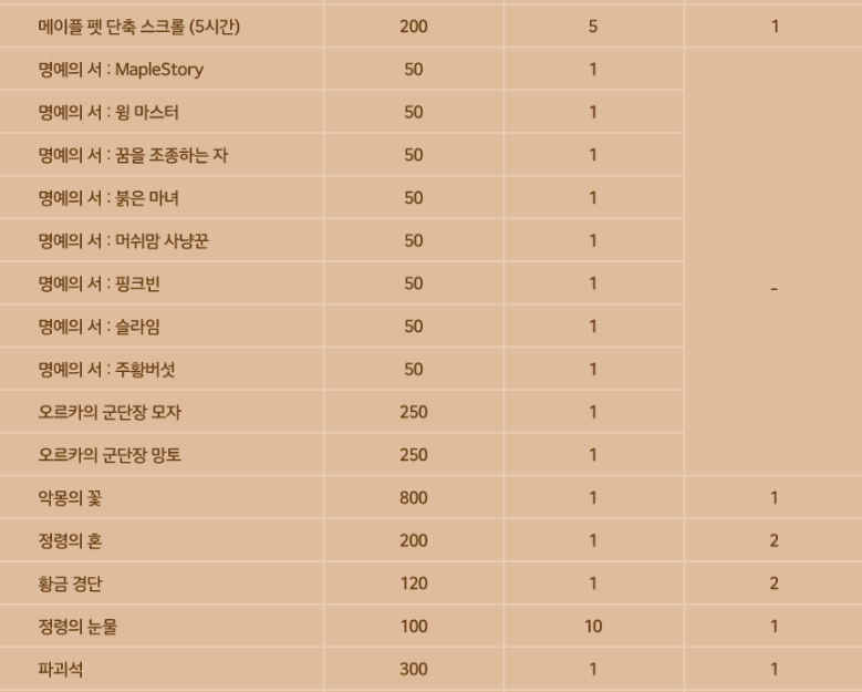 접속을 할 수 있는 이벤트 외에 이번에는 인게임 내에서 퀘스트를 수행하고 보상을 받아보는 이벤트에 대해서 알아볼게요. 우선 첫 번재 이벤트는 메이플스토리의 몬스터를 찾아라 이벤트로 오르가 NPC에게서 퀘스트를 받은 후 메이플스토리 던전과 필드에서 메이플 몬스터를 처치하고 이벤트 아이템으로 메이플 코인과 교환이 가능하고 퀘스트 완료시에도 메이플 코인을 10개를 더 받아보실 수 있는 이벤트 되겠습니다.