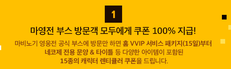 이상으로 마비노기 영웅전 네코제 이벤트에 대해서 간단하게 알아보았는데요. 다른 게임 부스들에 비해서 상품과 쿠폰을 100% 지급하기 때문에 상당히 혜자스러운데요. 마영전을 플레이하신다면 한 번 방문해보시는 것도 좋을 듯 합니다.
