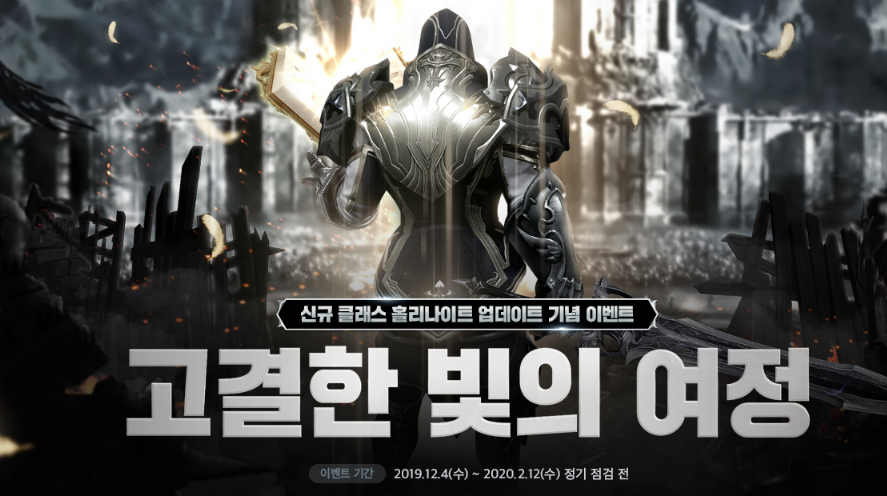 이렇게 신규 클래스인 홀리나이트 업데이트 기념으로 이벤트를 진행하는데요. 고결한 빛의 여정 이벤트로 2020년 2월 12일까지 진행되고 홀리나이트로 전직하시고 일정 아이템 레벨을 달성할 경우에 보상을 받아보실 수 있는 이벤트입니다. 그냥 홀리나이트를 플레이하시면 받아보실 수 있는 이벤트이기 때문에 홀리나이트를 플레이하실 의향이 있으신 분들은 한 번 참여하셔서 보상 받아보시면 좋을 것 같습니다.