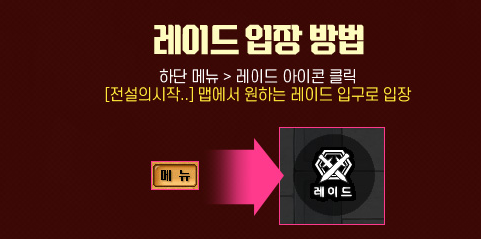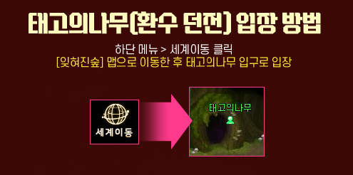 레이드는 하단에 있는 메뉴를 클릭하신 후 레이드 아이콘을 클릭하시게 되면 맵에서 원하는 레이드 입구로 입장해보실 수 ㅇㅆ고, 환수 던전은 하단에 있는 메뉴를 클릭한 후 세계이동으로 태고의 나무입구로 입장해보실 수 있겠습니다.