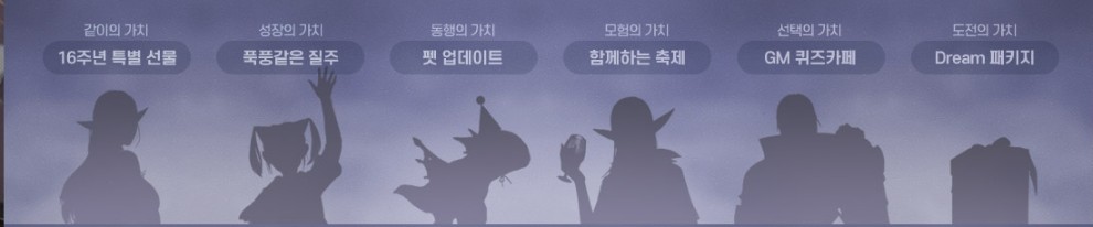 우선 이벤트를 알려드리기에 앞서서 16주년 맞이한 기념으로 16엘코인에 다양한 선물을 받아보실 수 있어요. 본서버/ 말하는섬 서버/ 각성 서버 별로 아이템이 다르며 모두 16엘코인에 구입이 가능한데요. 하지만 위 보상들은 모두 계정당 1회만 받아보실 수 있기 때문에 캐릭터를 신중하게 고르시는 것이 좋겠습니다.