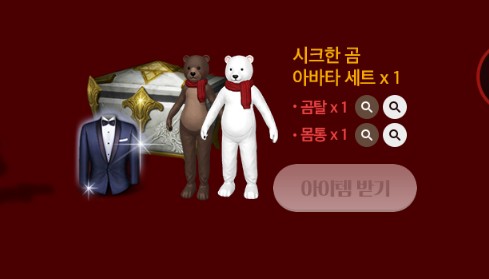 우선 이번 이벤트의 메인 보상은 바로 저 곰 아바타 세트라고 할 수 있답니다. 이 아바타 세트 같은 경우에는 PC방에서 80시간을 플레이할 시에 받아보실 수 있는 이벤트인데요. 브라운과 흐니색 이렇게 2가지의 색상이 있는데, 색상에 따라서 각각 능력치가 다르기 때문에 80시간으 채우신 후에 원하시는 곰돌이로 받아보시면 되겠습니다.