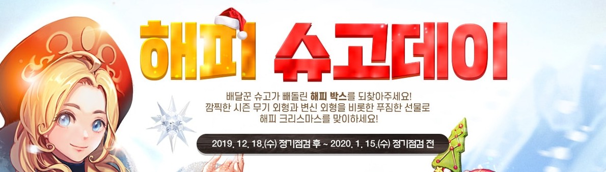 안녕하세요. 오늘은 아이온 소식을 가지고 왔답니다. 이제 다음 주가 크리스마스 인데요. 그래서 현재 아이온에서 해피 슈고데이라고 크리스마스 이벤트를 진행하고 있어요.이벤트는 2020년 1월 15일까지 진행되는 이벤트로 시즌 무기 외형과 변신 외형등 다양한 이벤트 보상을 받아보실 수 있다고 하는데요. 그럼 자세한 이벤트 내용에 대해서 알아보도록 하겠습니다.
